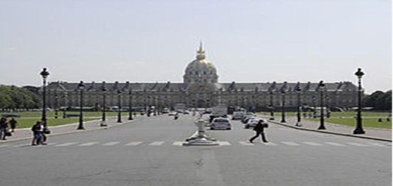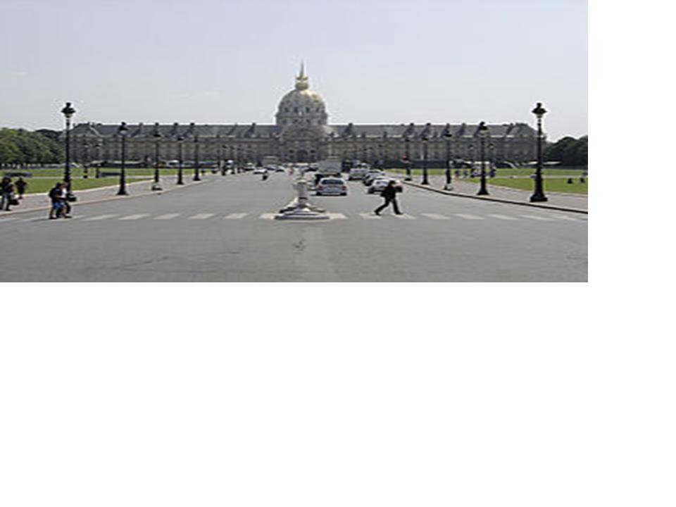 Nesse local está localizado o Hôtel National des Invalides, ou Palácio dos Inválidos, que é um enorme monumento parisiense, cuja construção foi ordenada por Luís XIV, em 1670, para dar abrigo aos inválidos dos seus exércitos. Hoje em dia, continua acolhendo os inválidos militares, mas é também uma necrópole militar e sede de vários museus. Entre as personalidades ilustres lá sepultadas encontra-se Napoleão Bonaparte e inumeros personalidades ilustres do circulo da nobreza militar francesa. O Rei Luís XIV precisou, tal como os seus predecessores Henrique III e Henrique IV, de assegurar auxílio e assistência aos soldados inválidos dos seus exércitos; para que “aqueles que expuseram as suas vidas derramarando o seu sangue pela defesa da monarquia (…) passem o resto dos seus dias na tranquilidade (ceux qui ont exposé leur vie et prodigué leur sang pour la défense de la monarchie (…) passent le reste de leur jours dans la tranquillité), diz o édito Real de 1670. Situadas na planície de Grenelle, nessa época um subúrbio de Paris, e os primeiros pensionistas foram albergados a partir de Outubro de 1674). O conjunto arquitetônico sofreu varias reformas al longo dos anos e no dia 15 de Julho de 1804 teve lugar na capela dos Invalides a primeira entrega das condecorações da Legião de Honra, por Napoleão Bonaparte, aos oficiais meritórios, numa faustosa cerimónia oficial. O edifício foi dotado desde muito cedo de funções museográficas: museu da artilharia em 1872 e museu histórico dos exércitos em 1896, reunidos como museu do exército (musée de l’armée) em 1905. O Hôtel des Invalides ainda acolhe presentemente uma centena de reformados e inválidos dos exércitos franceses. A administração encarregada desta missão é o Instituto Nacional dos Inválidos (Institut national des invalides).