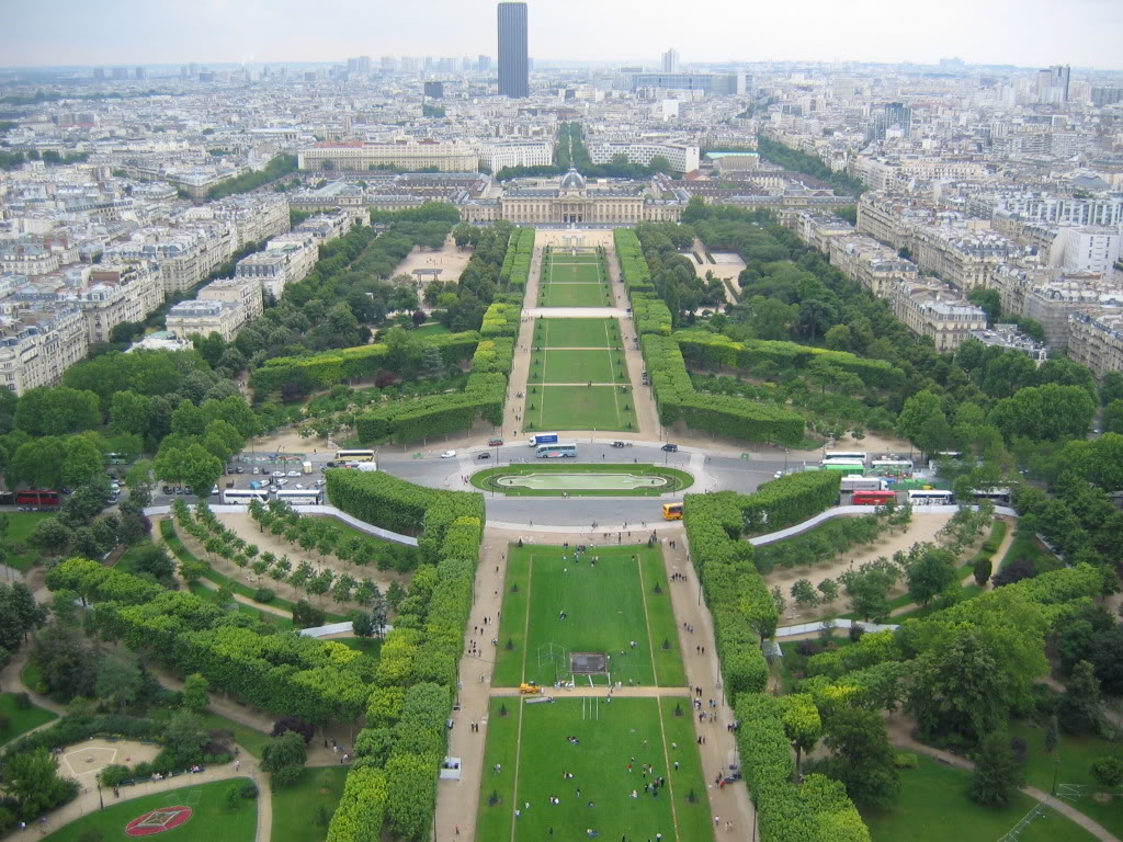 Atualmente, após as reformas Hausmanianas de Paris seus espaçosos jardins prolongam a perspectiva através de piscinas que se reflectem uma na outra numa vista contínua, ao longo de um eixo central, a partir da fachada Oeste, o qual é estendido pelo Axe historique (Eixo histórico), portanto dos jardins é oferecido uma esplêndida perspectiva dos Champs-Élysées, do Arco do Triunfo e do Grande Arco do La Défense