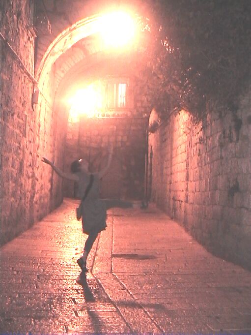 Jerusalém tem muita história e cada canto seus mistérios. Também há muitos sítios arqueológicos. Em um deles, no subsolo abaixo do nível da rua, eu dançava e expressava a Deus minha adoração quando percebi algumas pessoas me observando e ouvi a voz de uma criança que dizia: olha! A moça está dançando para Deus!